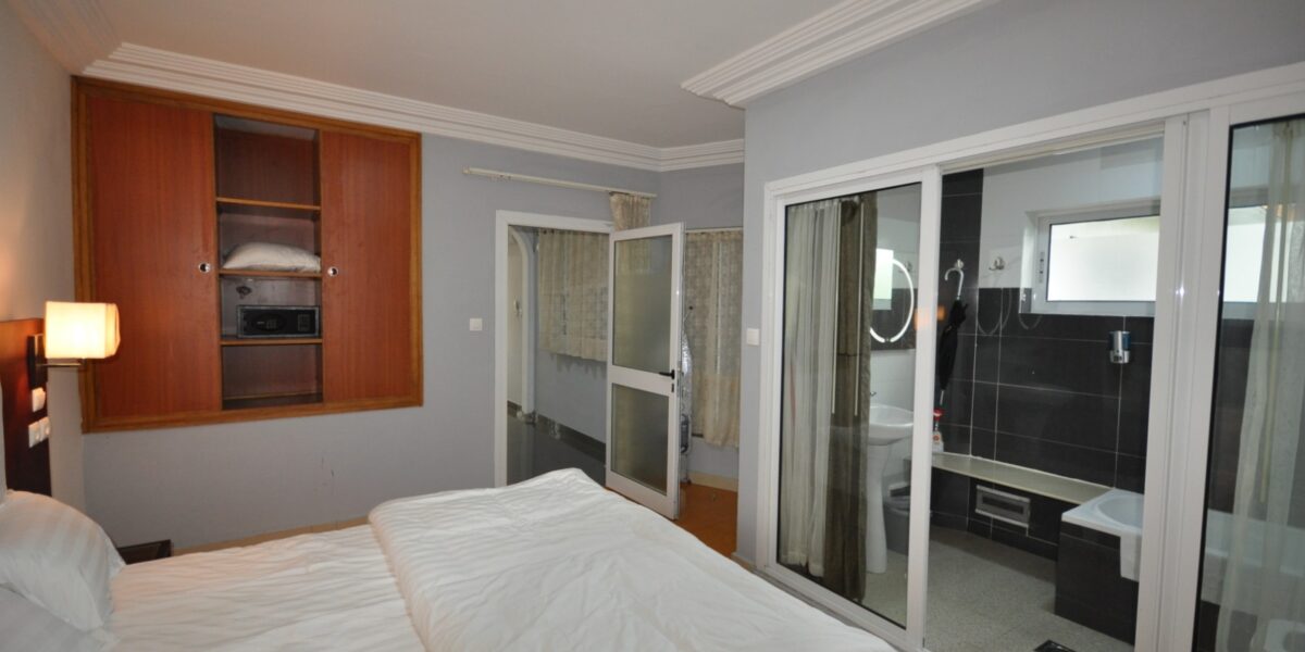 Spacious 172 sq ft fully-furnished two-bedroom apartment in Douala, perfect for families. This Line Residence apartment features a living room, kitchen, balcony, 42-inch satellite TV, 2 baths, and free WiFi. Suitable for up to 4 guests.